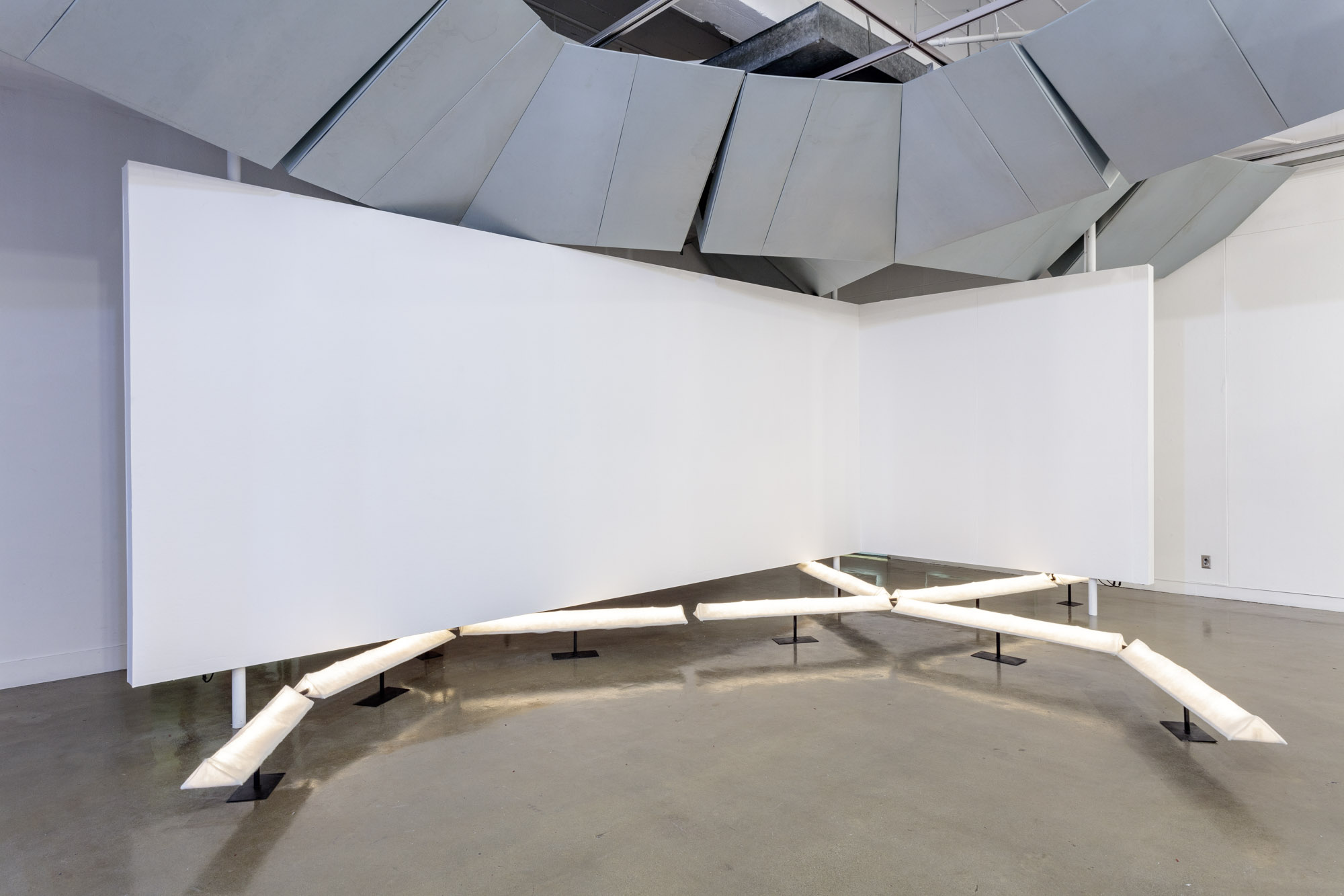 Dune Ducts is presented as half of Superposition, a joint exhibition with Katy Barkan installed in the gallery at Perloff Hall in the Department of Architecture and Urban Design at UCLA. The joint exhibitions share an interest in the threshold between architectural objects and their spatial corollaries, skirting a clear boundary between the production of things and the production of environments. Superposition, as a model of working, does not attempt to resolve or reconcile. Rather, it serves as a counterpoint to the paradigms of synthesis and juxtaposition. The overlay of multiple categories of work and multiple authors allows for errors, transpositions, and irresoluble differences.